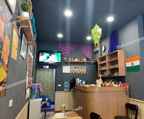 店內掛滿印度風味的擺設以及印度國旗,電視也播送印度歌曲和MV。