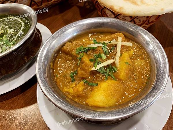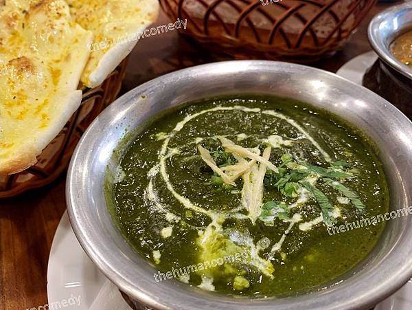 綠醬菠菜奶酪咖哩是菠菜泥搭配白色的印度奶酪,口感滑順,是很特別的一道菜!