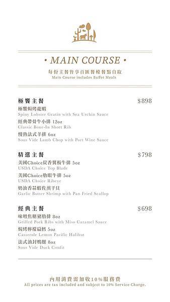 用餐限時兩小時,餐點酌收10%服務費用