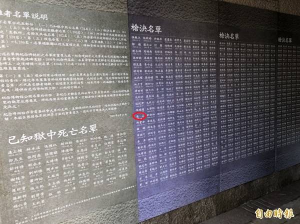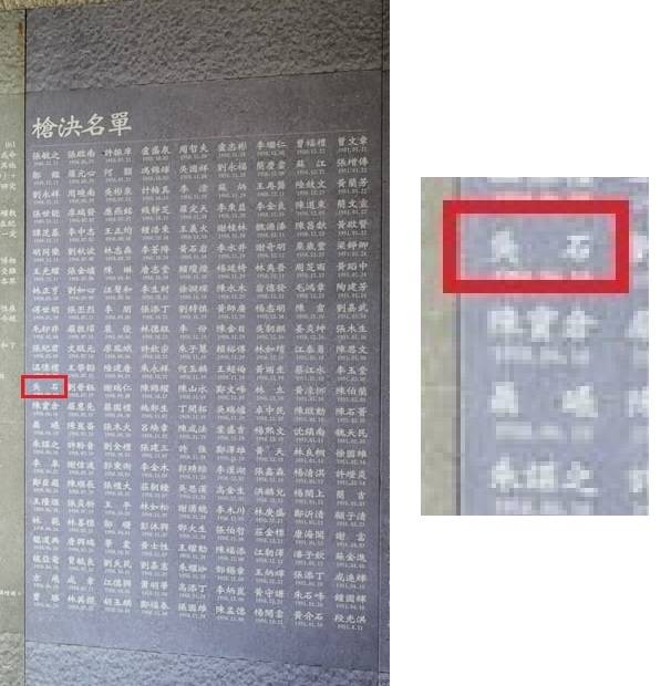 吳石前輩,就在槍決名單的第一直行內,紅圈處。
