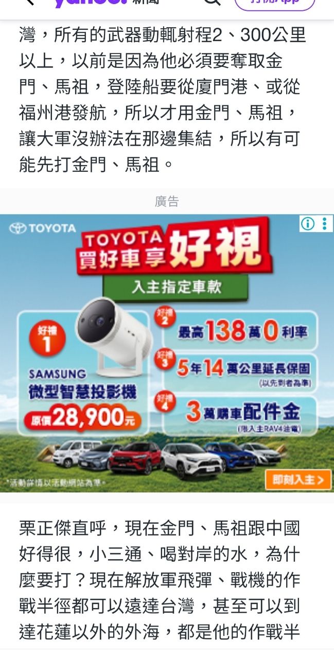 戰爭型態,提及若金門、馬祖遭遇戰事「台灣本島仍可能維持正常上班上課」引起熱議;