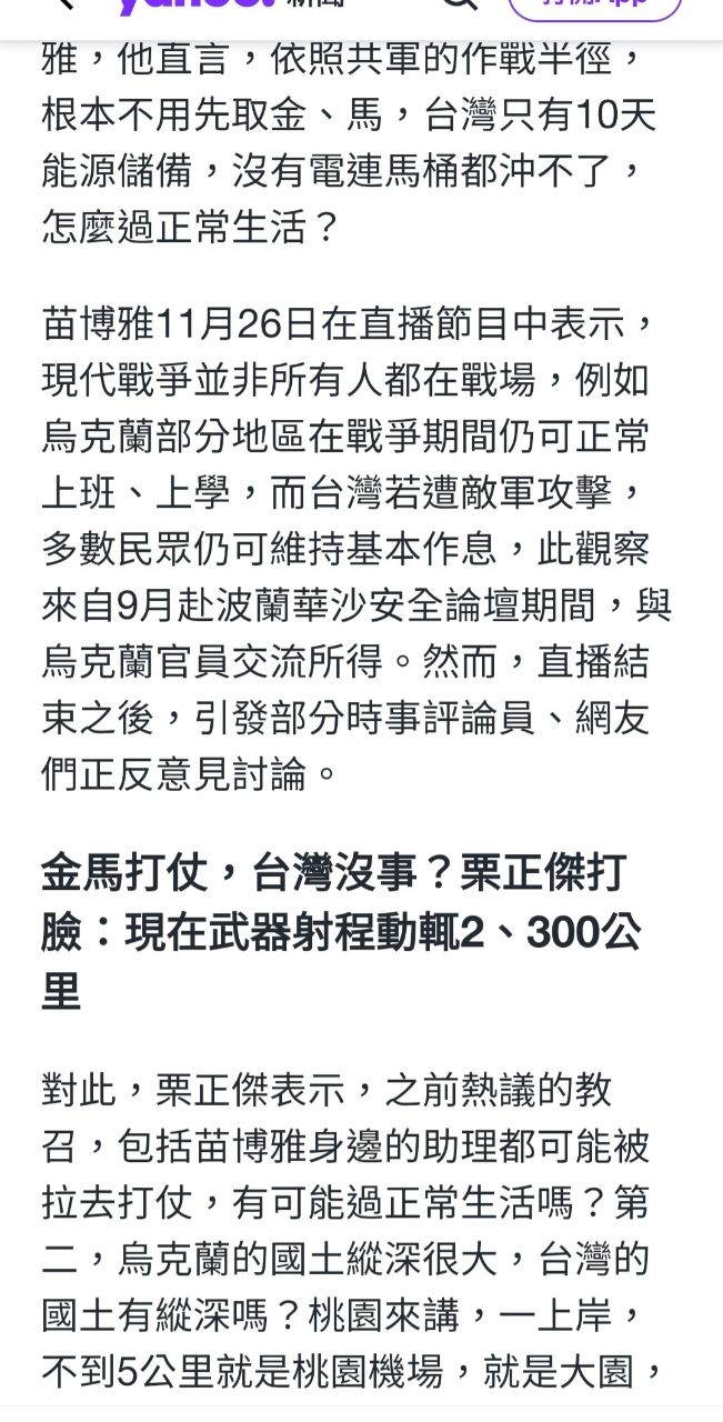 作」的重要性。苗博雅也針對「美化戰爭」的質疑做出回應,強調若台灣不幸失守,自己