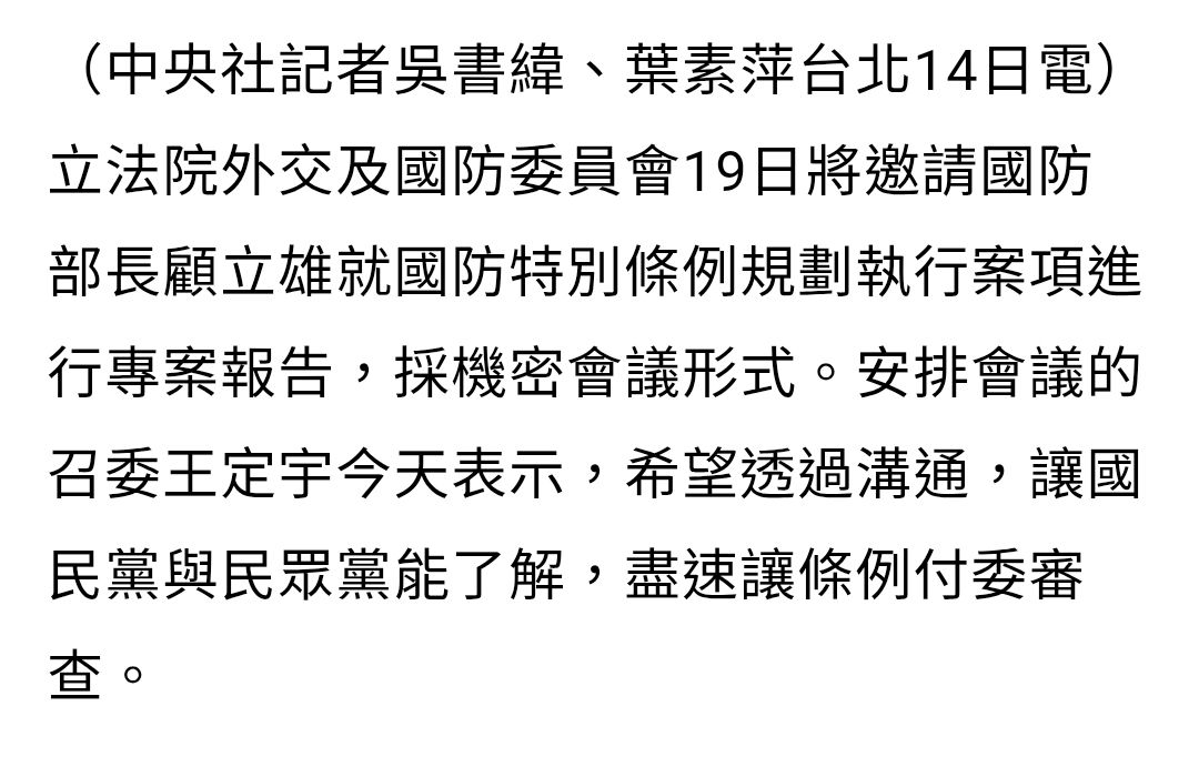 你猜猜之前有沒有排過要邀國防部報告機密會議然後投票被否決