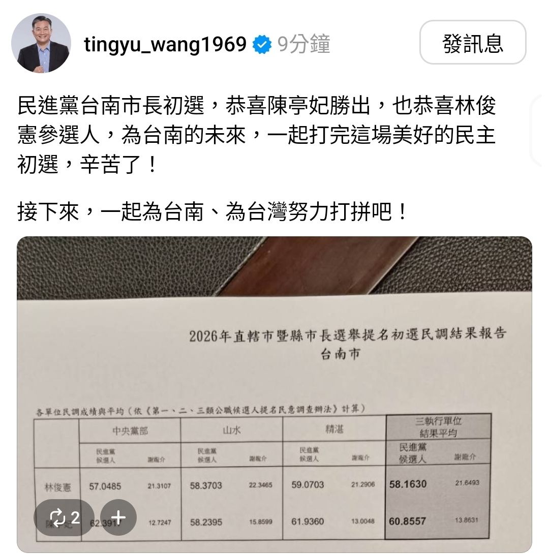 你怎麼不把陳和林的民調打出來。