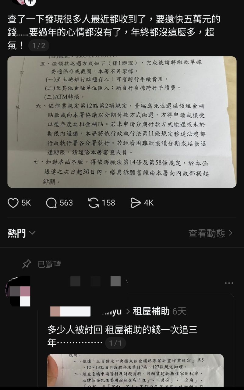 好像很多人收到被政府追討租屋補助,然後一次還追溯好幾年,金額達好幾萬,有的被追