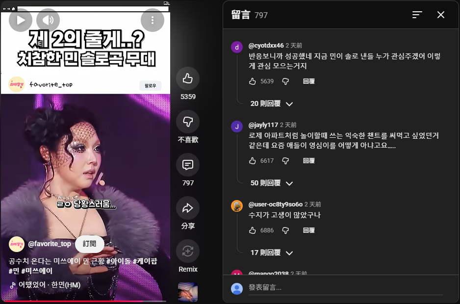 然而,在 10 日播出的打歌舞台影片或短影片留言區,引來不少網友冷嘲熱