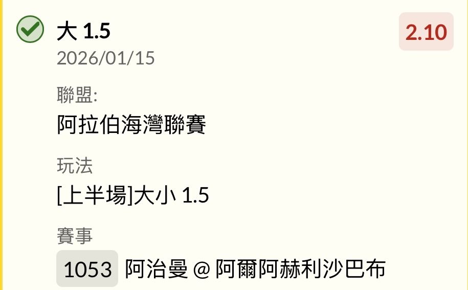 賽前上半1.5大收